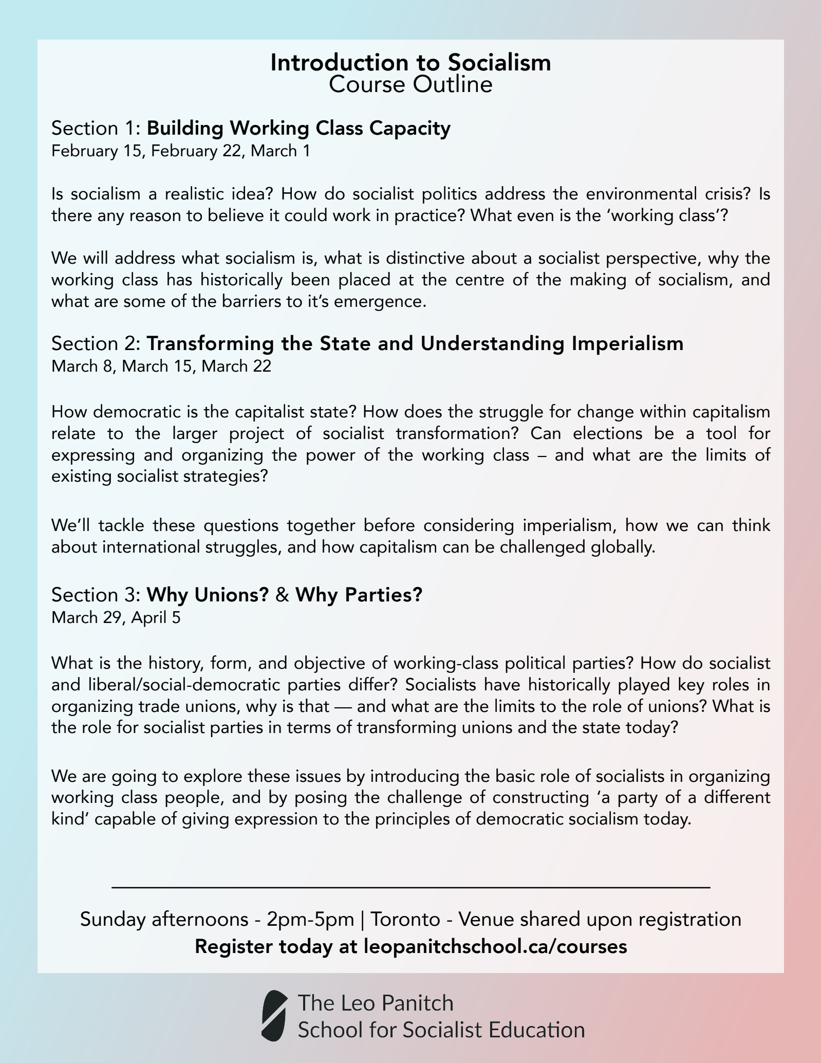 In these uncertain and dangerous times, The Leo Panitch School for Socialist Education is a space to listen, discuss and challenge the contemporary relevancy of socialism.
