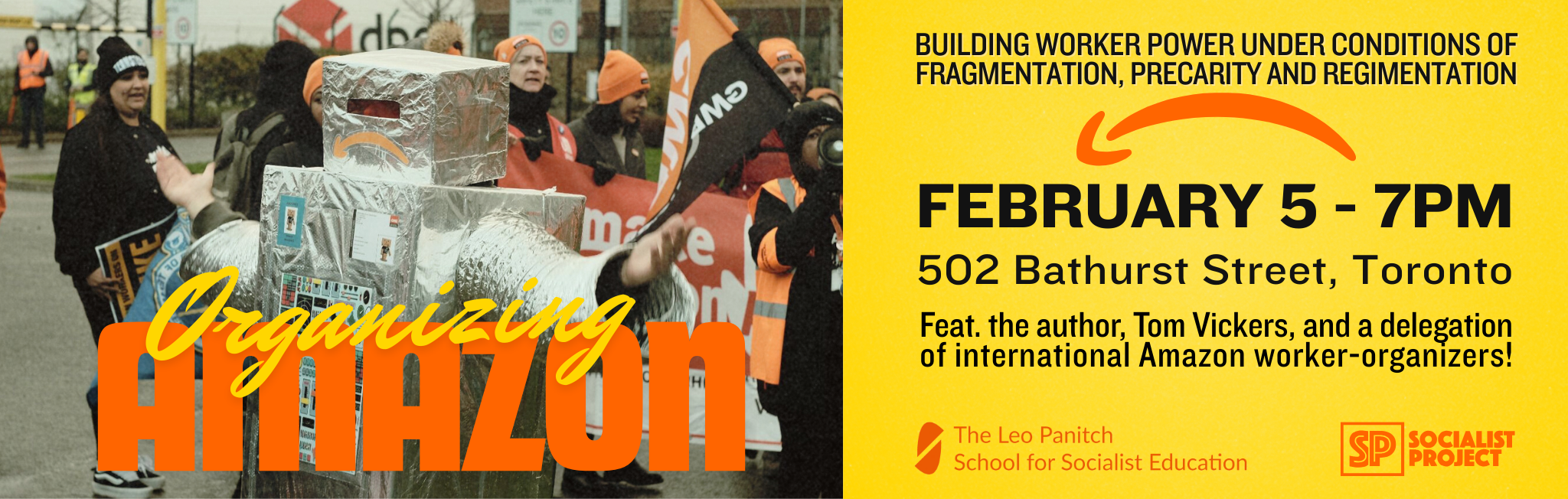 We are incredibly honoured to host the author of the book Tom Vickers, and longtime labour activist Jonathan Rosenblum, as well as two workers from the Coventry facility for the first stop on their North American organizing tour. The evening will feature a discussion of the lessons to be learned from the campaign in Coventry and what strategies will be needed for the Canadian labour movement to begin challenging the Amazon behemoth.
